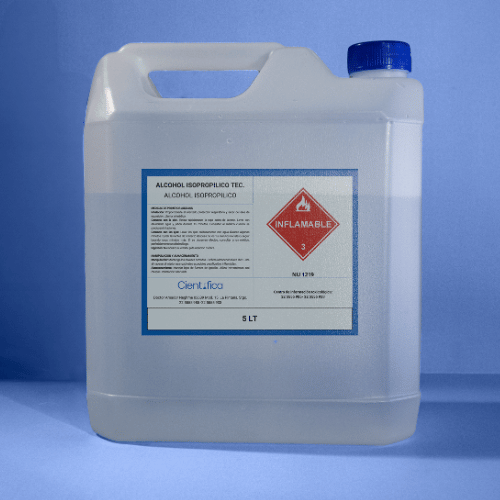 El Alcohol Isopropílico es un alcohol secundario, líquido incoloro, volátil, de olor característico y completamente miscible con agua y con la mayoría de solventes orgánicos. Su clasificación TEC. (grado técnico) lo hace apto para aplicaciones industriales y de limpieza, donde no se requiere un grado analítico de pureza.